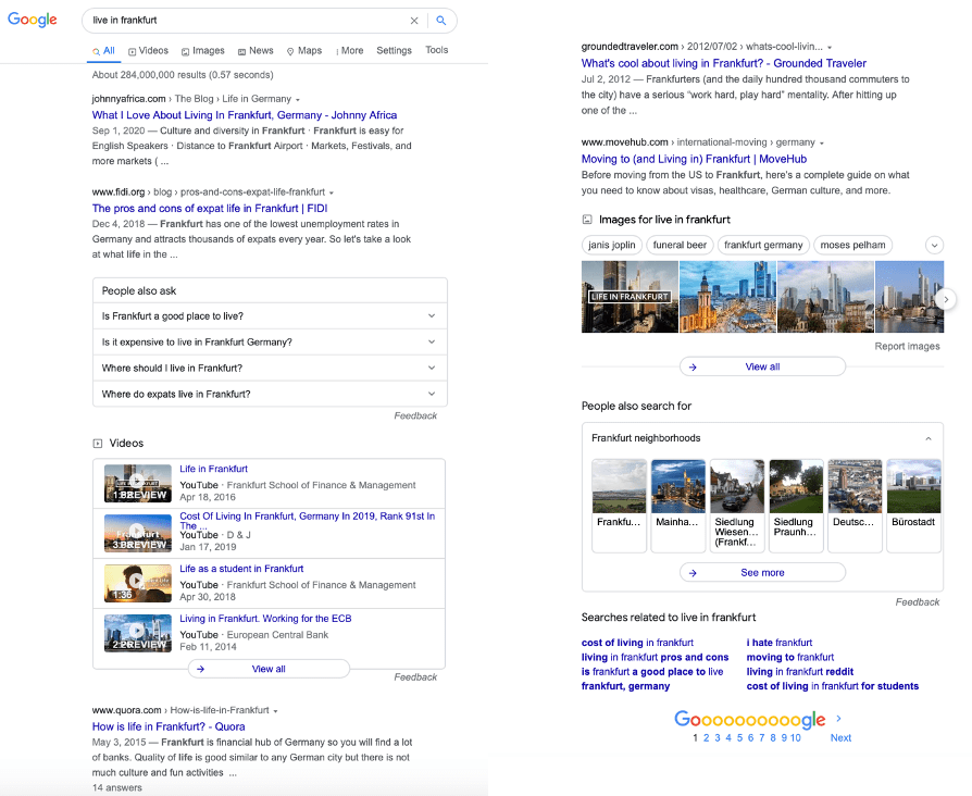 Legend: Google search results for “live in Frankfurt”