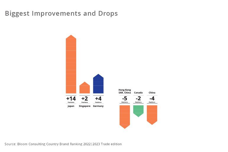 The latest Bloom Consulting Country Brand Ranking Trade edition is the first to reveal the impacts of Covid-19 on the performance of Nation Brands worldwide. Along with the global public health situation and its management, political decisions like Brexit, climate events and more have left their mark on this year’s results. Note, that this edition does not yet show the impact of the Russia-Ukraine war.