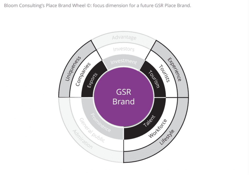 Furthermore, Bloom Consulting identified key areas for improvement as part of the Place Brand strategy for GSR. These recommendations, designed to strengthen GSR’s local and international positioning, include foundational establishment, community engagement, collaboration with external entities and the development of a new brand architecture. These suggestions were influenced not only by qualitative research findings, but also by the region’s current conditions and needs.